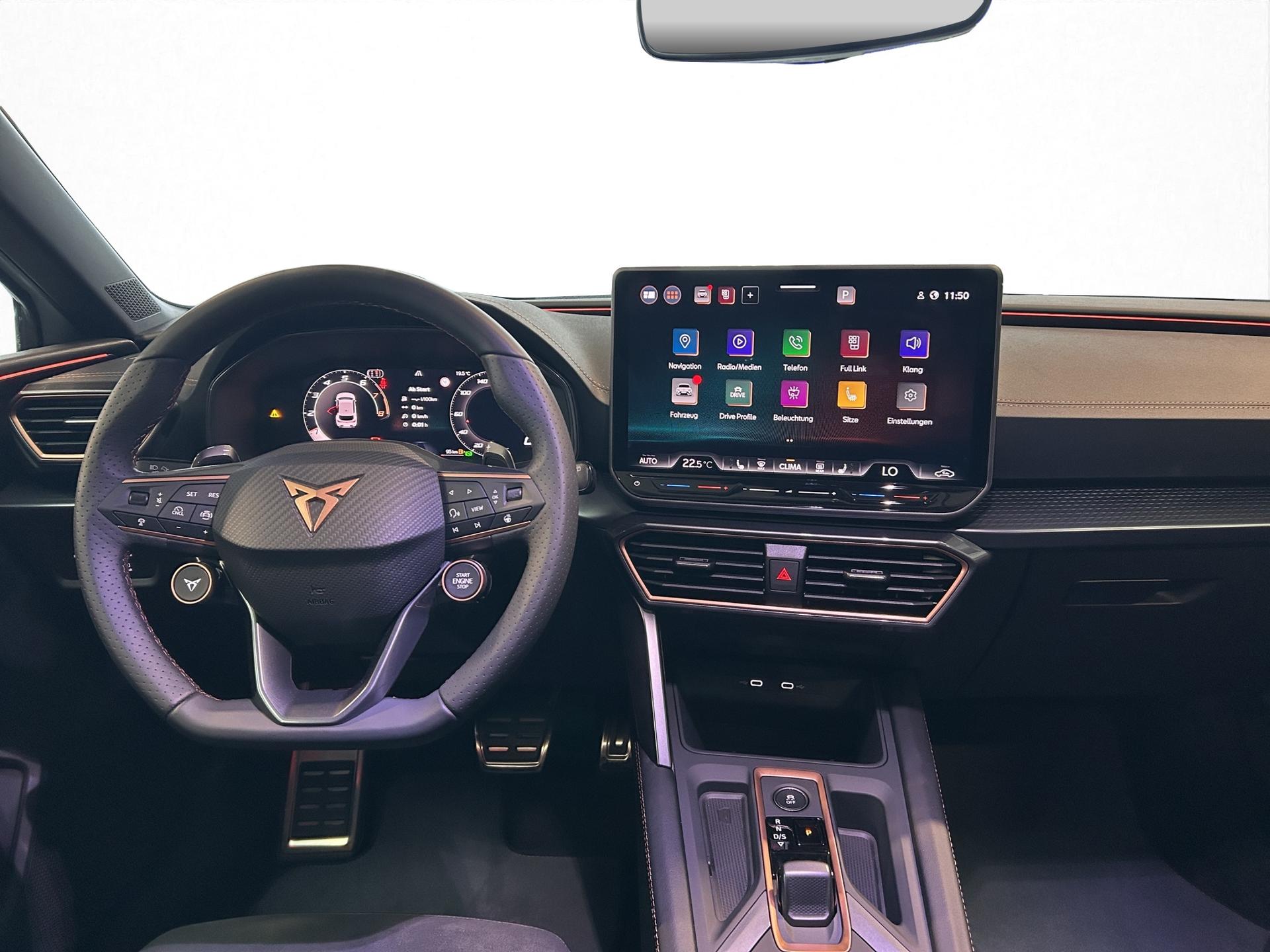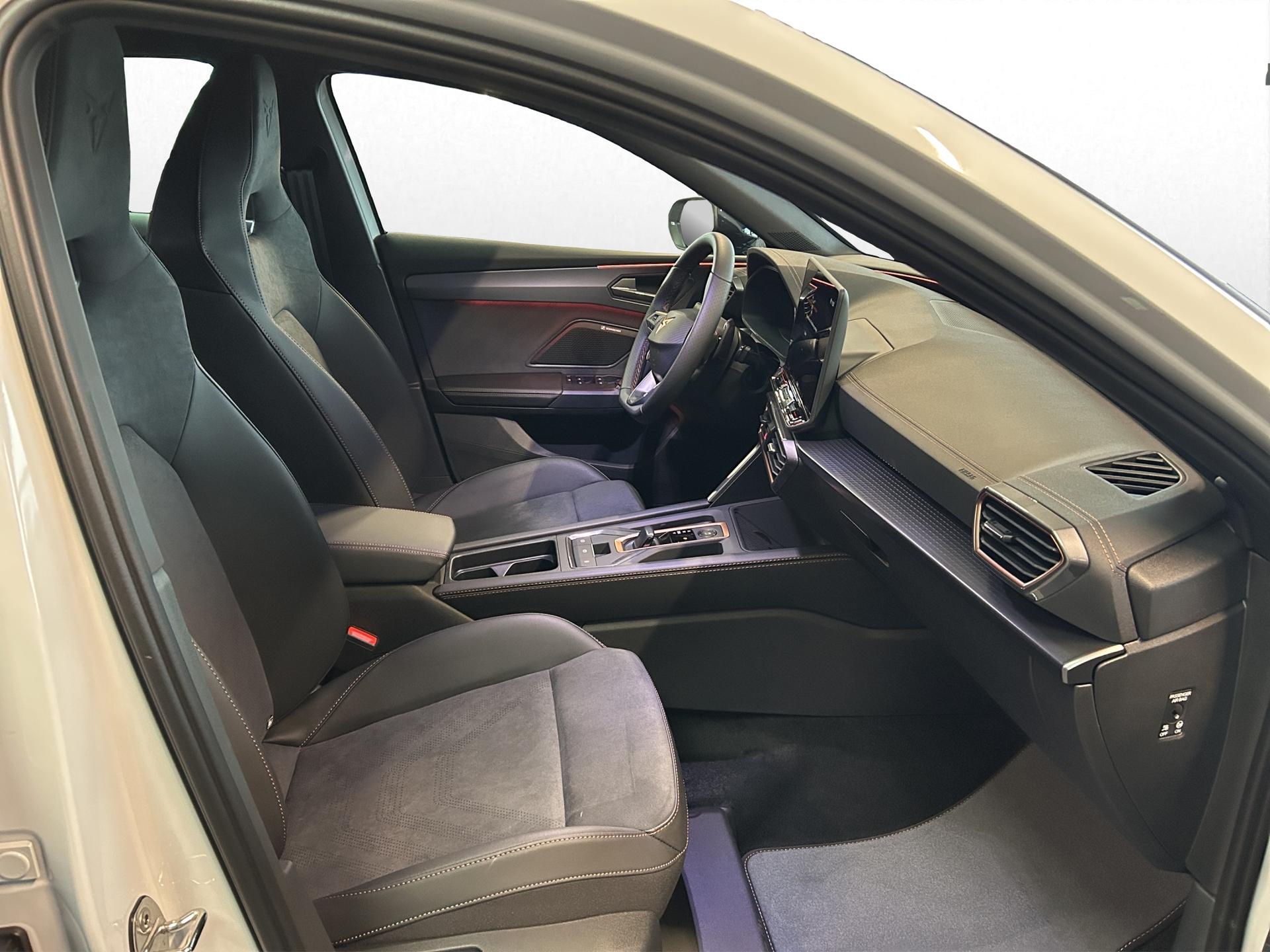 SERIENAUSSTATTUNG: ACC bis 210km/h, Fernlichtassistent, 3-Zonen-Climatronic, Digital Cockpit Plus, Induktive Ladefunktion, Wireless Full Link, Supersport-Multifunktionslederlenkrad beheizbar, LED-Tagfahrlicht, 230V Steckdose im Kofferraum, 2* USB-C vorne 2* USB-C hinten, Fahrer- und Beifahrerairbag, Außenspiegel elektrisch verstell- , beheiz- und anklappbar, Coming Home-/ Leaving Home Funktion, Dachhimmel schwarz, XDS, Front Assist, Innenspiegel autom. abblendbar, ISOFIX, Mittelarmlehne vorne, abgedunkelte Seitenscheiben ab der B-Säule, Sprachsteuerung, Cupra Drive Profil, Parksensoren vorne und hinten, Licht und Regensensor, DAB, el. Handbremse inkl. auto Hold, el. Fensterheber vorne und hinten, Gepäckraumabdeckung, LED- Nebelscheinwerfer, LED-Rückleuchten mit dynamischen Blinker, Mittelarmlehne hinten, Rücksitzlehne geteilt umklappbar, Reifendruckkontrolle, Start-Stopp- Funktion, Tank 45l, Verkehrszeichenerkennung, el. Wegfahrsperre, eCall, uvm.
